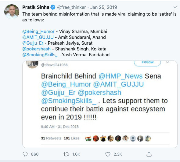 Alt News is pro-Islamic, fake news propaganda, allegedly fact checking news portal. It was founded by left leaning Pratik Sinha. Alt News operated under the aegis of Pravda Media Foundation that is joined owned by Pratik Sinha, Mohammed Zubair and Pratik Sinha’s mother Nirjhari Sinha. Parvda Medis Foundation received an undisclosed sum of money from The Independent and Public-Spirited Media Foundation (IPSMF). IPSMF has also funded another propaganda news portal, The Wire. According to Pratik Sinha, Alt News has also received an undisclosed sum of money from Zindabad Trust which is managed by Hindu hating, break-India member Arundhati Roy.