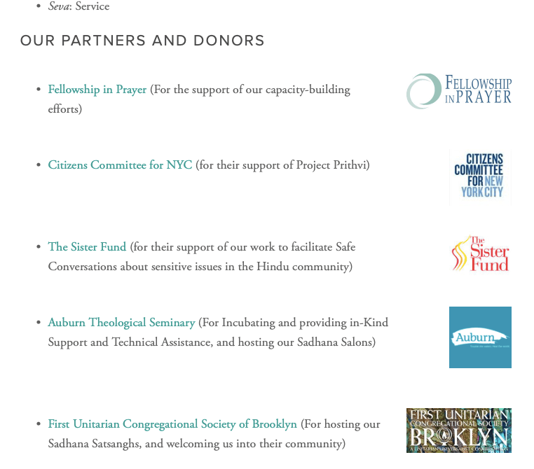 They cash in on the genuine good name of Chinmaya Missions’s almost-iconic Balavihar classes which most Hindus would have attended in their childhood, and who would want to inculcate good Hindu values in their American-based offspring. Sadhana website says they “follow” Chinmaya’s Missions’ programme. However when SHHAN emailed Chinmayananda who have categorically stated that they are not connected to Sadhana and run their own Balavihar classes in New York. So by using the signature name of Balavihar, Sadhana is practicing deception.