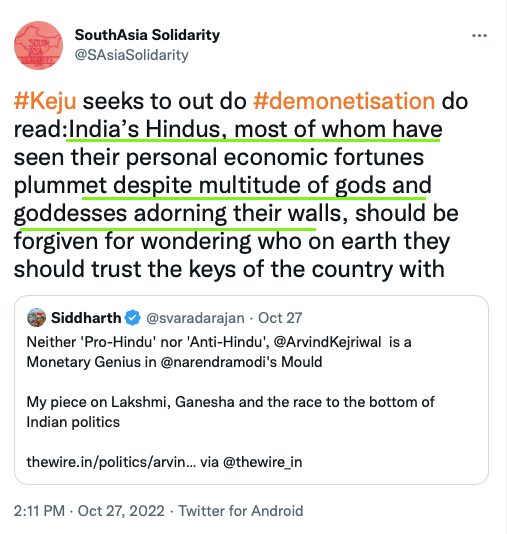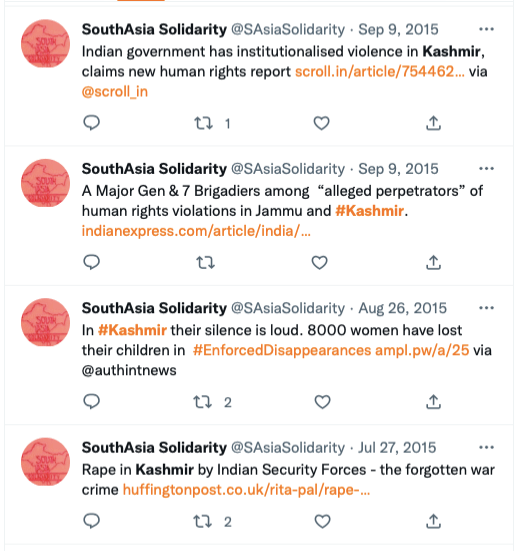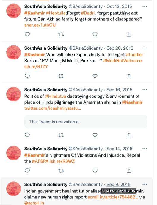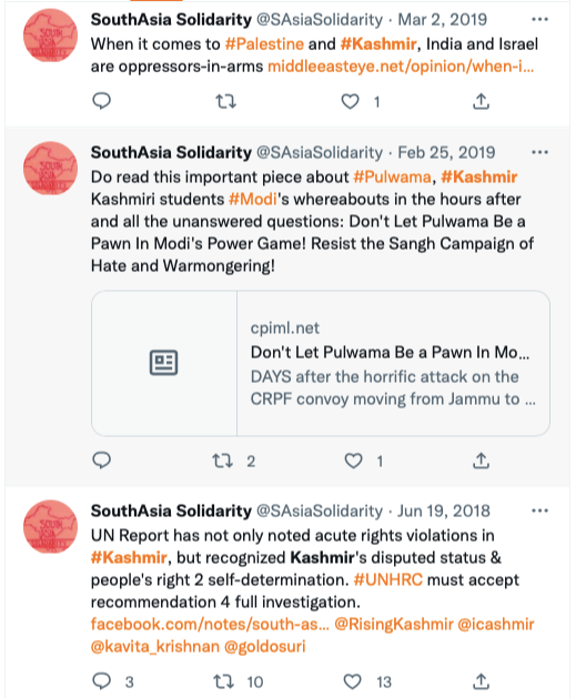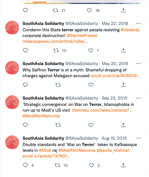 While the group pretends to work for “South Asia” their entire campaign is against Hindus and India even when Hindus in Pakistan, Bangladesh and Afghanistan are butchered everyday for being Hindus, their temples attacked, festivals disrupted and girls abducted, raped, forcibly converted and married off to their abductors. A report by Digital Forensics, Research and Analytical Centre (DFRAC) analyse how SASG led a sustained hate campaign against Hindus and India.