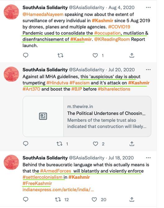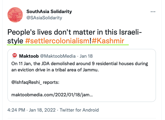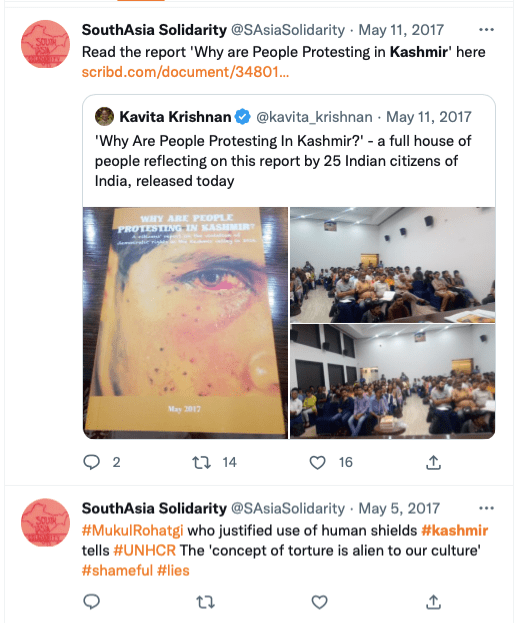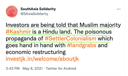 They have often called India’s presence in Kashmir as “occupation”, “settler-colonialism“, “illegal annexation”, “under siege”, “repression”, “religious genocide” and “land grabbers” along with liberally using the #FreeKashmir hashtag.