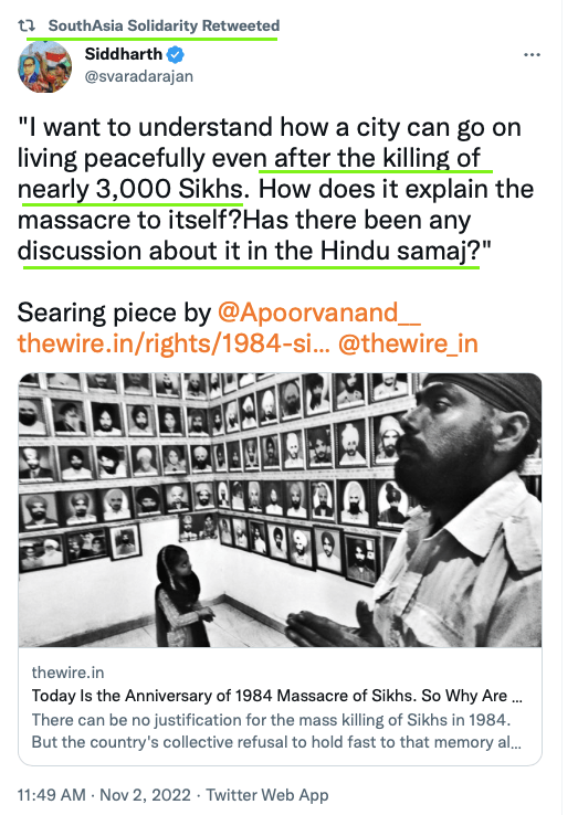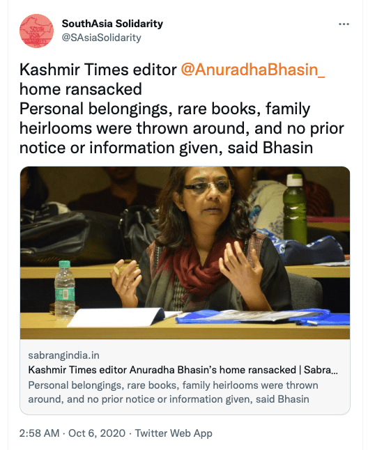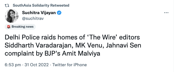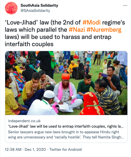 In February 2024, Islamist newsportal, Article 14 reported that SASG’s co-founder, Amrit Wilson had her OCI (Overseas Citizen of India) status revoked by Government of India for ““multiple anti-India activities” and engaged in “detrimental propaganda” against the Indian government, which were “inimical to the interests of the sovereignty and integrity of India””.