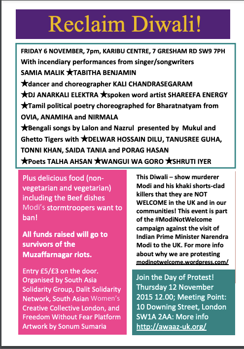 SASG ran a ‘Reclaim Diwali’ event in 2015 for ‘secular’ celebrations of the Hindu festival of Deepavali.