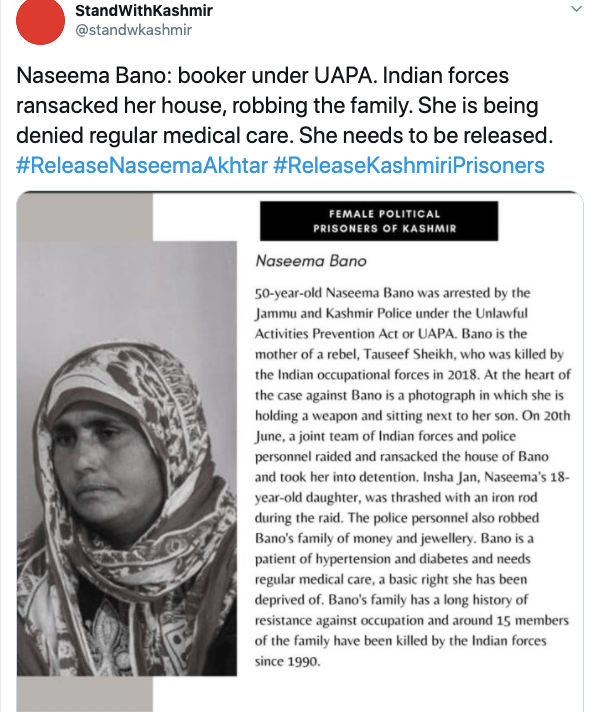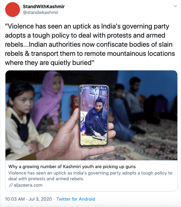 SWK has never spoken about the genocide of Kashmiri Hindus in 1990, is silent about Pakistan’s state-sponsored terrorism, and its brutal oppression of Hindus and Sikhs, while portraying themselves as victims who have choice but to take up arms. According to Middle East forum group, they lionise and eulogise violent, defend and justify Islamists attacks on Indian armed forces and civilians in Kashmir. They are found in US University campuses, chapters in different cities, as guest-speakers in events, and work with Jamaat-e-Islami proxy, ICNA. Many SWK experts are academics and professors in various US universities, like Dr.Hafsa Kanjwal, Huma Dhar, Ather Zia. “Experts” usually specialise in subjects such as gender studies, human rights, and colonialism. They have an active social media presence that runs poetry, drawing and article campaigns that portray Muslims as victims and India government and Hindus as oppressors. They call terrorists as “militant”, want Indian government to release all “political prisoners” as they are just ordinary citizens fighting for human rights in Kashmir.