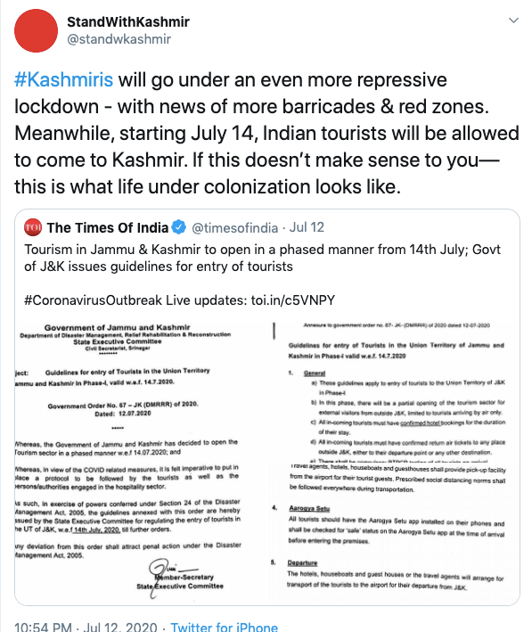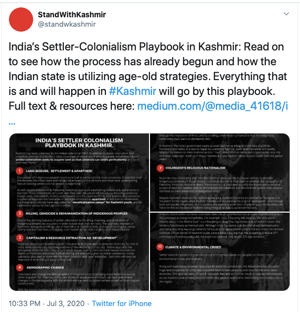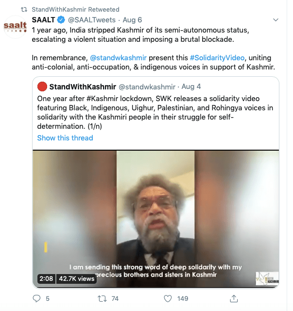Sunday Guardian Live‘s Kundan Jha reported SWK conducts regular “Stand with Kashmir Teach-in” that is run by Professors and social activist with links to Wahhabi lobby to spread a fake narrative, propagate lies and fuel global protest against abrogation of Article 370. The online-classes are held world over especially in capital cities. The classes are conducted by pro-Pakistan Wahhbi lobby. These classes have also been conducted in JNU, Delhi University, University of Hyderabad among many others. The teach-in doesn’t include the ethnic cleansing of Kashmiri Hindus from the state not doesn’t talk about Pakistan sponsored terrorism or stone-pelting by the locals. SWK also offers a 14-week Kashmir Syllabus for those interested in learning and teaching about Kashmir.