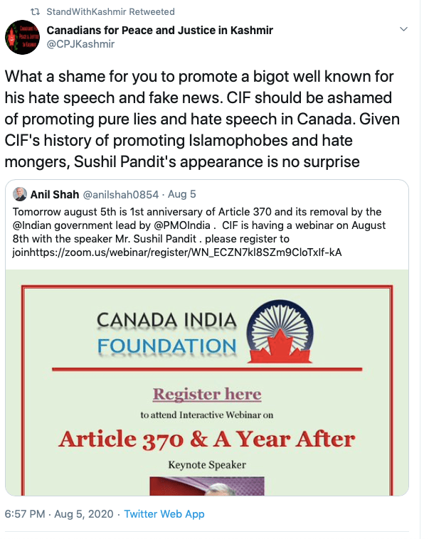 Abha Shankar has exposed Hafsa Kanjwal’s links with Turkey and CIGA (Centre for Islamic and Global Affairs). Hafsa Kanjwal has spoken at events organised by CIGA in Turkey. Martha Lee of ME Forum (Middle East Forum) exposed Stand with Kashmir and their links to Jamaat-i-Islami.