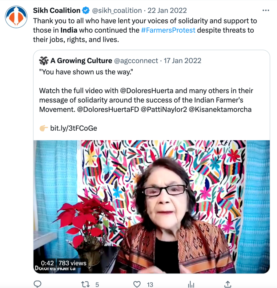Though The Sikh Coalition has protested against the Farmers Bill calling it “unfair”, nowhere specifically about the Farmers Bill they are against. In a thread posted on their Twitter handle, The Sikh Coalition said they lobbied with policymakers and press in the United States to “encourage coverage of this historic movement”.