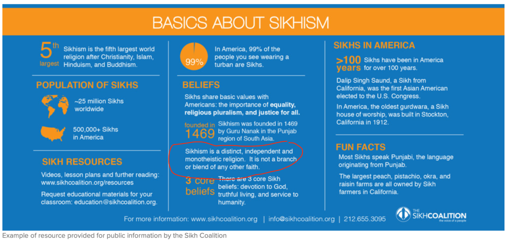The Sikh Coalition presents Sikhism as a monolithic, distinct, independent religion – like Abrahamic religions disregarding the Sikh Guru’s worship of Hindu Gods and Goddesses like Devi and Lakshmi.