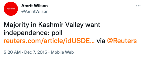 Writing on Kashmir for The Guardian, When will the Kashmiri nightmare end?, Amrit Wilson makes a list of accusation agains the Indian Amrny offering no evidence for the claims made. She calls terrorsim in Kashmir as “popular uprisings and an armed struggle for a separate state”. She further writes,