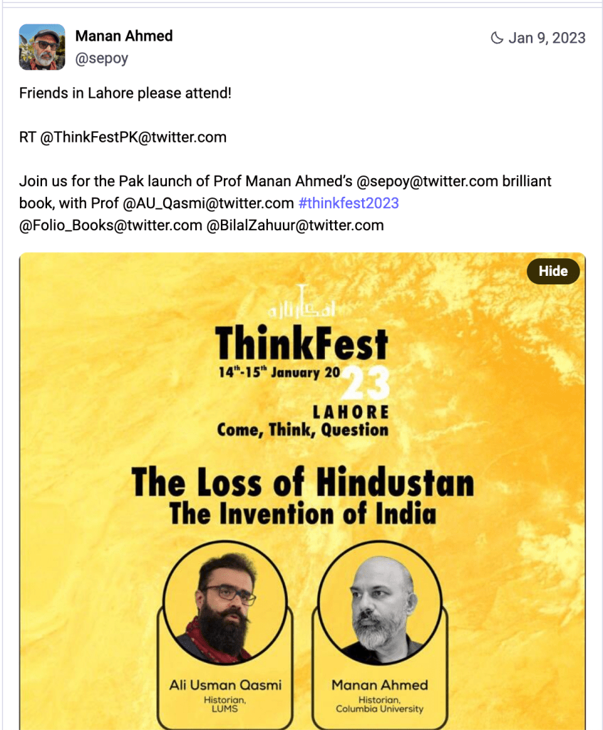 Manan Ahmed was active on social media but has since left X. He used to tweet under the handle @sepoy. Now, he can be found using the same name in Mastodon. Below are some of his social media posts.