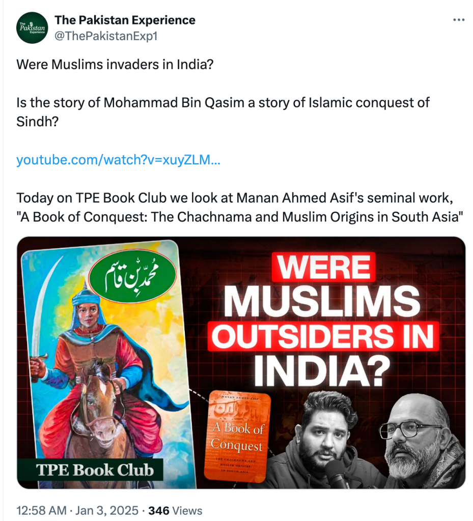 In the article “How Colonial Myths About the Arrival of Muslims in Sindh Still Divide the South Asian Mind” published by The Wire, Manan Ahmed argues that Muslims in India came not as Islamic invaders, but as settlers and blames the British for giving it a religious colour. He states, “We cannot be held hostage to British narratives about Muslim arrival in India as religion-inspired invaders from Arabia.”