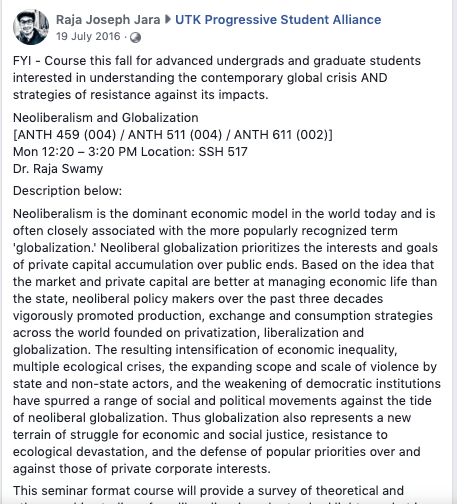 Raja Joesph Swamy, also known as Raja Harish Swami or Raja Joseph Jara, is a member of FOIL (Forum of Inquilabi Leftists), radical group of Indian origin leftists. He is an Assistant Professor of Anthropology, University of Tennessee, Knoxville (UTK). Earlier he was an Assistant Professor in University of Arkansas. He is spokesperson of India Civil watch, another radical-left organisation that works against India and Hindus, key leader of Coalition Against Genocide (CAG), and Coalition for the Defence of the Constitution (CDCD) along with fellow FOIL member Angana Chatterji. He is also an anti-Semite as reported by Canary Mission.