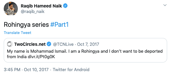 In TwoCirles.net, Raqib present’s a series of articles, showing Roghinyas as harmless people. He doesn’t talk about their radicalisation, massacre of Hindus in Rakhine, Myanmar, or their illegal entry into India via India-Banglasdesh border with no supporting documents.