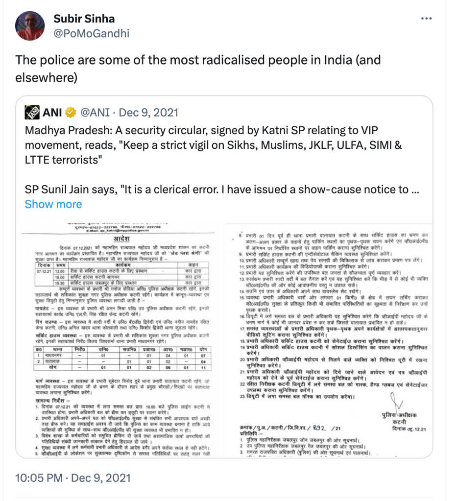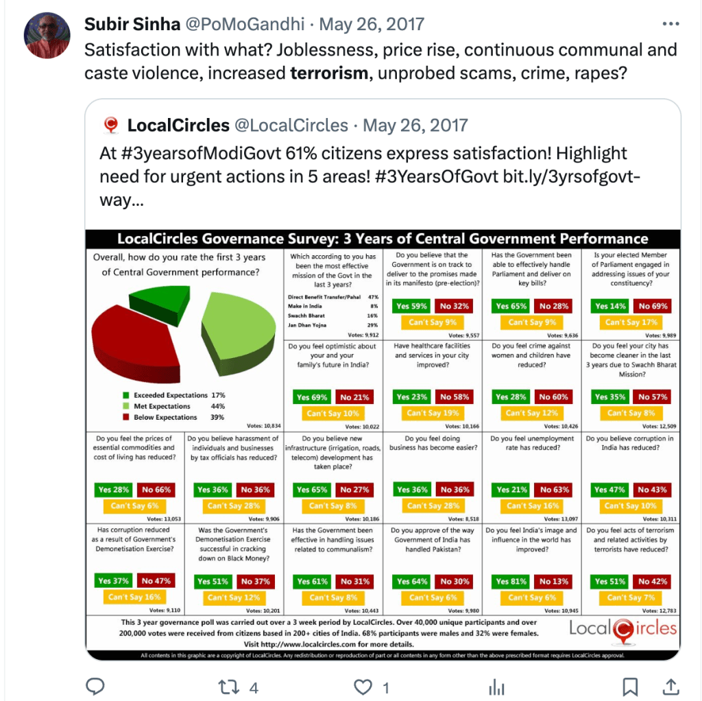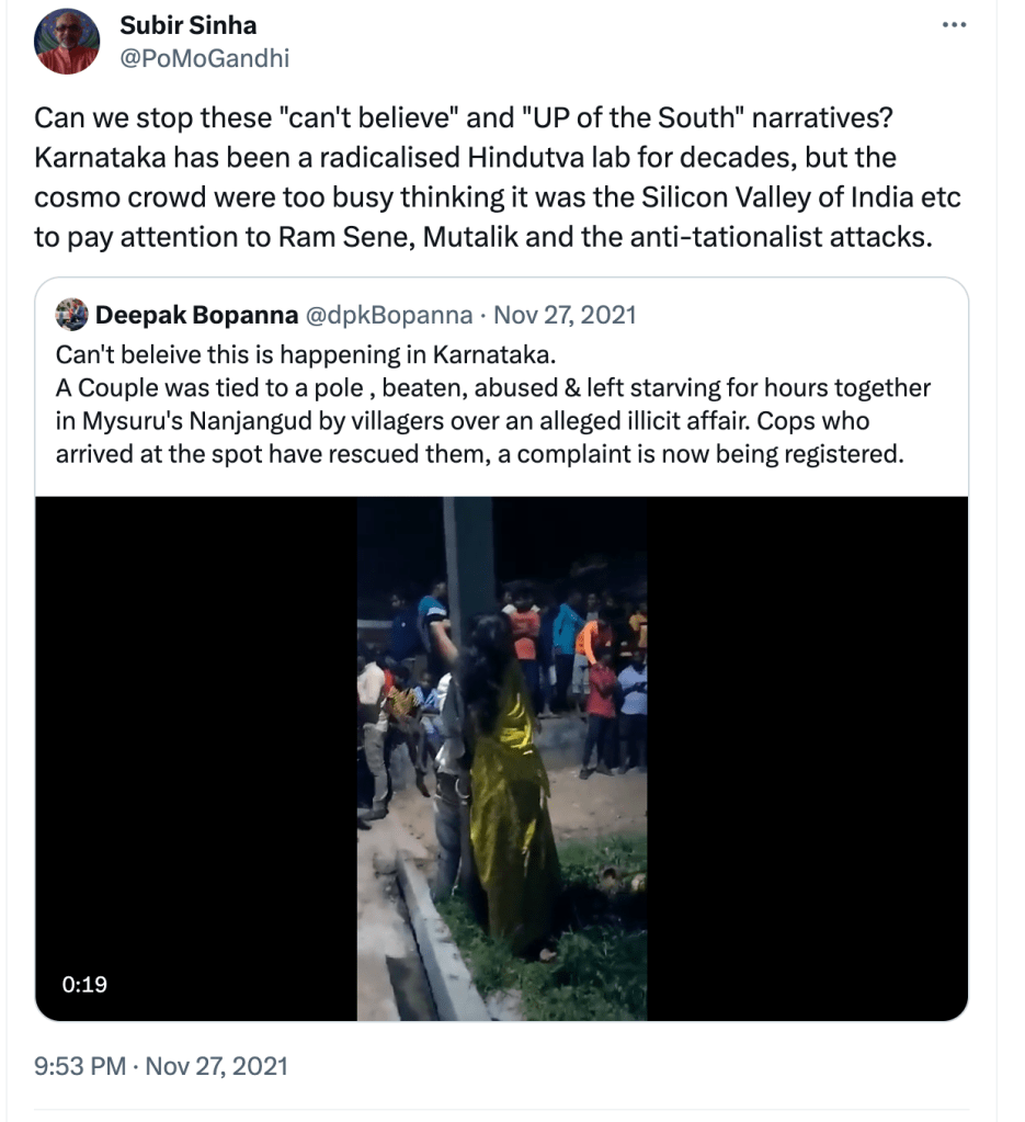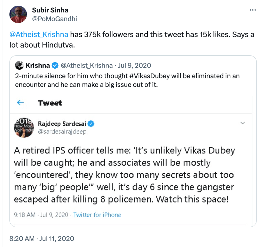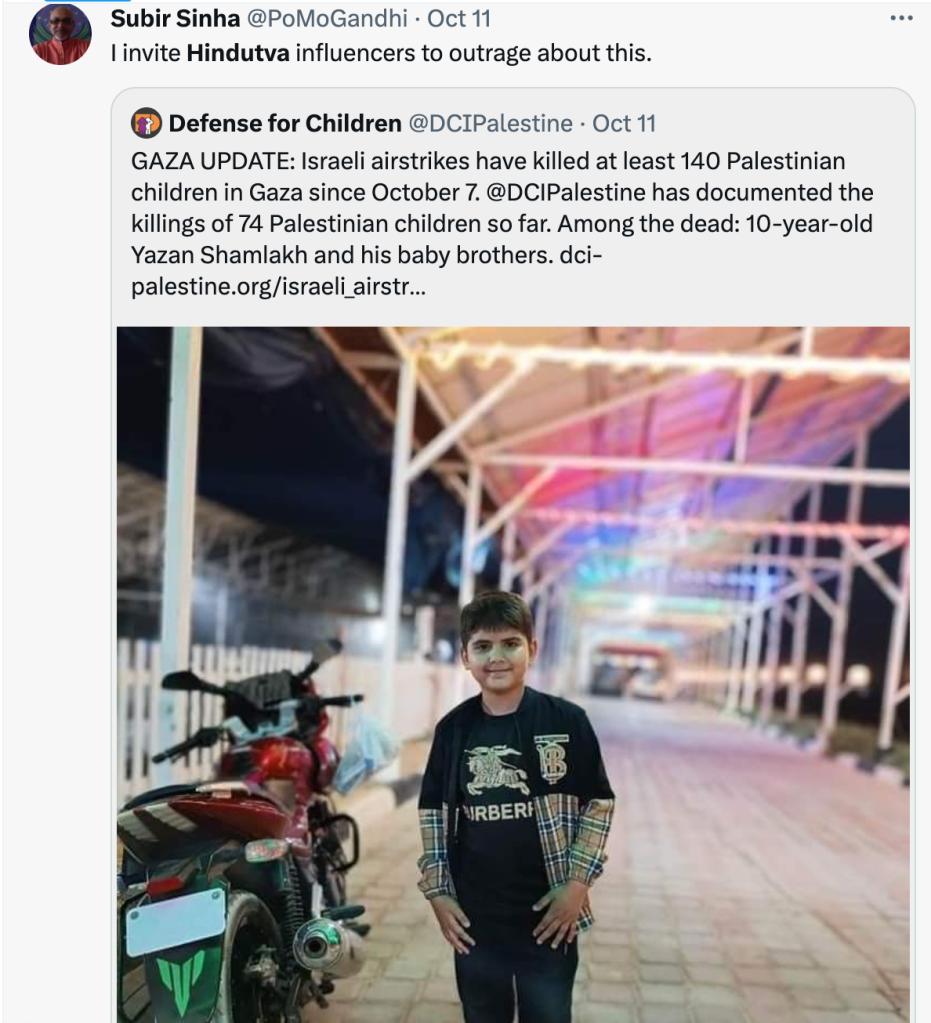In 2022, Subir Sinha wrote “Modi’s ‘people’ and populism’s imagined communities” where he ridicules the millions of Hindus slaughtered, raped and forcibly converted by Islamic invaders as “…meme of a ‘Hindu holocaust’…. “. The entire piece is riddled with claims not backed up by data or evidence, complete lies and utter contempt for Hindus.