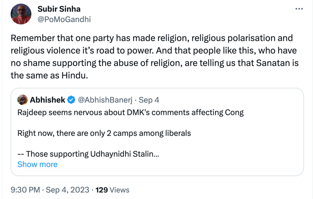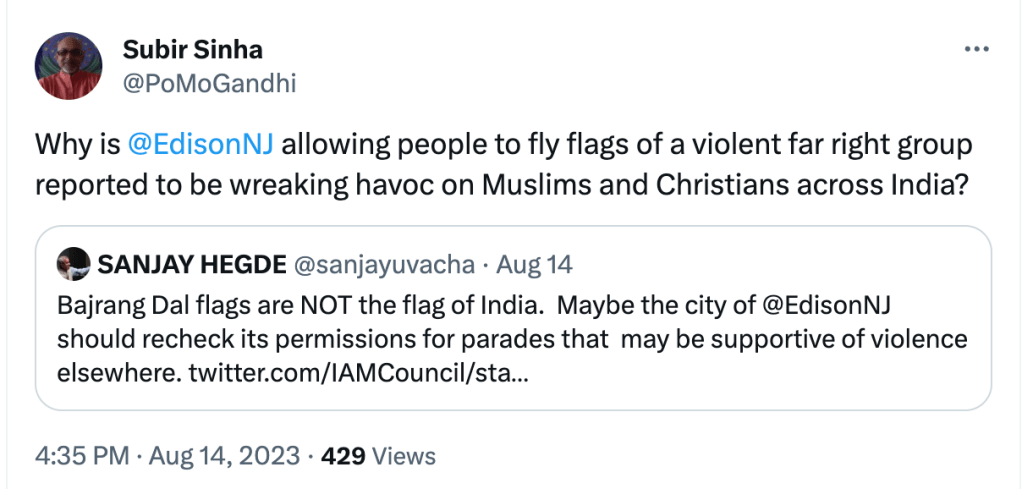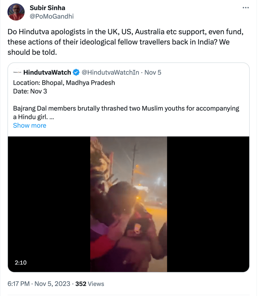 While talking to Ibrar Mohammed on Leicester violence. Dr.Subir Sinha says “that it could be possible that the people who raised slogans could be recent immigrants from India who have come to study in the universities in and around Leicester.” Sinha completely ignores the instigation and intimidation of Islamists like Majid Freeman, Mohammed Hijab, Ali Dawah, Shakeel Afsar and leftist groups like South Asia Solidarity Group (SASG) which have indirect links to the Iranian regime. Nor does Dr.Sinha say that a temple flag was desecrated and burned.