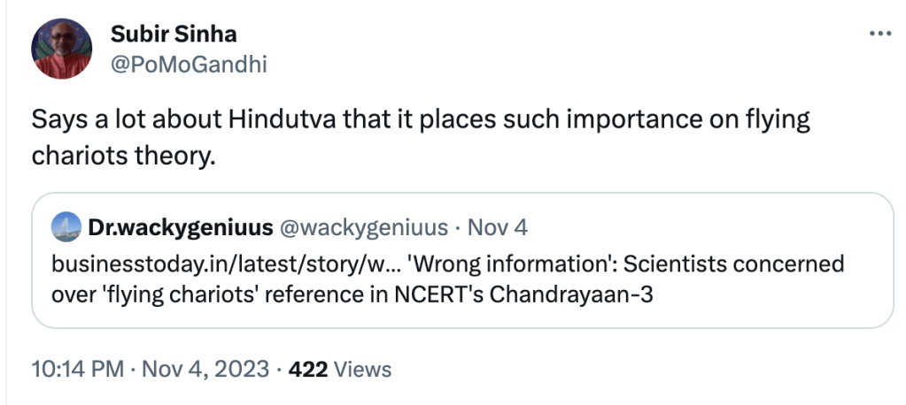 Talking to Australia’s ABC on the Removal of evolution and periodic table from Indian textbooks sparks outrage, Dr. Subir Sinha misinformed ABC listeners on the so-called remvoal of evolution and periodic table from Indian textbooks. NCERT (National Council for Education and Research) clarified in their X post that the two contents were not removed but will be introduced in the class of 11th instead of middle school. He again criticised the “superiority of Hindu knowledge” for the changes brought in by NCERT.