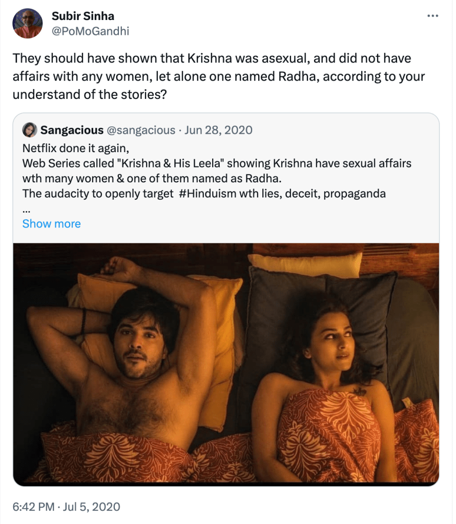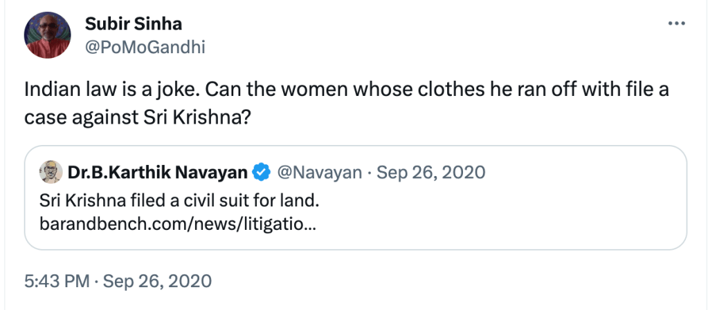 In 2015 writing for SOAS South Asian Notes on “The Futures of India’s Past” Dr.Subir Sinha ridicules ancient Indian epics – “Indian epics, which have a massive readership in an age of undiminished, even increasing religiosity, have more science fiction-like elements than any other major religions of the world, and were made popular as television shows through the past two decades.” Sr. Sinha is asserting to the telecast of Ramayana and Mahabharata which had a massive viewership and continues to have massive viewership decades later. He furhter says that the “narrative of victimhood and of not being given due recognition by the world” underpins the Hindutva ideology.